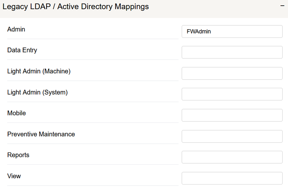 If you are considering managing your FactoryWiz user login usernames/passwords through your company's Microsoft Active Directory (AD) through the Lightweight Directory Access Protocol (LDAP) interface, you would enable the LDAP / Active Directory checkbox.